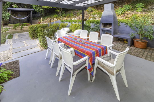 Surrounded by a beautiful garden, this home is located a few minutes' drive from the Wilderness Village, beach and the river. Enjoy the quiet neighborhood in privacy while having the conveniences and activities to explore close by.